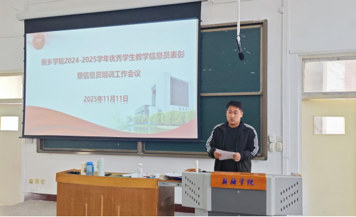 11月11日下午,教学督导与质量监控办公室在A11-226教室组织召开新乡学院2024-2025学年优秀学生教学信息员表彰暨学生教学信息员培训工作会议。获表彰的优秀学生教学信息员和2025级学生教学信息员200余人参加了会议。