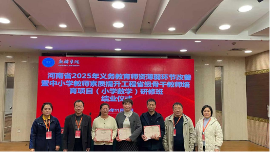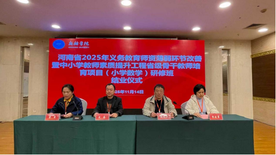 秋实盈枝结硕果,研修赋能启新程。11月14日,由新乡学院数学与统计学院承办的“河南省2025年义务教育师资薄弱环节改善暨中小学教师素质提升工程省级小学数学骨干教师研修班”结业仪式,在新乡宾馆三楼太行厅举行。新乡学院数学与统计学院院长、国培省培首席专家张之正教授,副院长、项目负责人皮磊,研修班学科班主任郭建霞与全体参训学员齐聚,共同见证结业时刻。仪式由生活班主任窦曼主持。