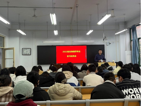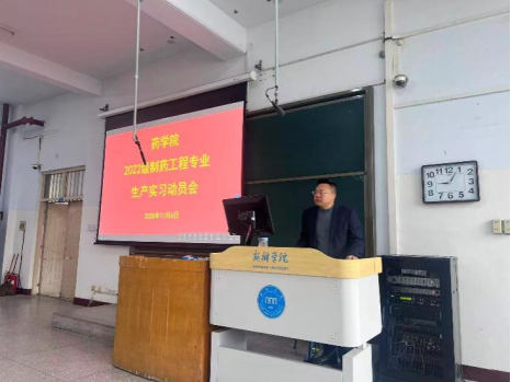 药学院历来高度重视学生生产实习实训工作,为深化校企合作,强化学生实践动手能力,促进理论知识向实践创新的有效转化,11月初,学院分批次召开了2022级制药工程、生物制药、药学3个本科专业和2024级药学(专升本)专业学生生产实习动员大会。药学院副院长齐永华、制药工程教研室主任贾若凌、生物制药教研室主任陈荣祥、药学专业教研室负责人王占勇、相关专业教师、辅导员和2022级全体416名同学参加了动员会。