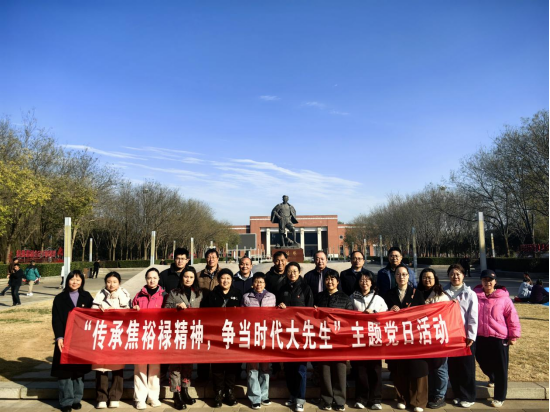 活动当日,教师党员们怀着崇敬之心前往本次活动的首站——焦裕禄干部学院。作为全国党员干部教育培训的重要基地,焦裕禄干部学院以传承和弘扬焦裕禄精神为核心,通过系统化、沉浸式教学,让焦裕禄精神成为激励党员干部砥砺前行的精神动力。在焦桐广场,党员们共同瞻仰焦裕禄同志当年亲手栽种的“焦桐”,一起观摩《念奴娇·追思焦裕禄》,感悟习近平总书记对焦裕禄无私为民的精神礼赞。