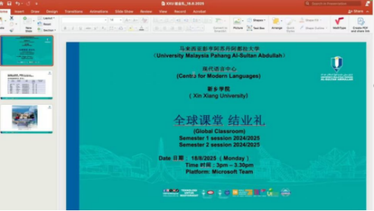 近日,新乡学院与马来西亚彭亨苏丹阿卜杜拉大学联合开展的2024-2025学年“全球高阶课堂”项目任务圆满结束。作为两校连续第二年深化合作的标志性项目,本次活动以线上教学为桥梁,搭建起中马学子学术交流与文化互鉴的跨国平台,不仅圆满完成汉语教学任务,更推动了两校教育合作向纵深发展,彰显了新乡学院对外开放的办学特色。