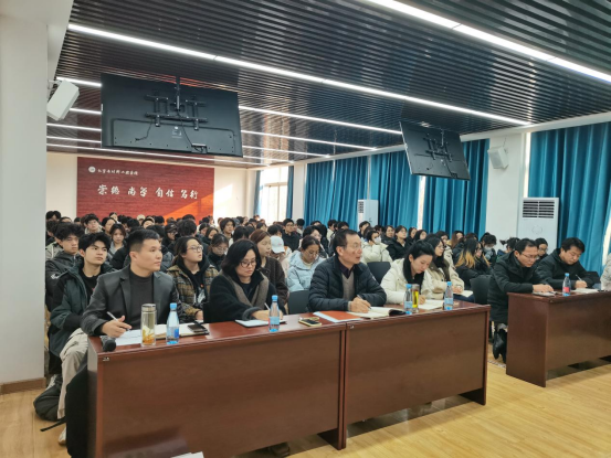 12月16日下午,党的二十届四中全会精神宣讲会在双师双能型教师理科实践实训基地举行。副校长张银堂作专题报告,化学与材料工程学院、土木工程与建筑学院、3D打印学院师生代表100余人现场聆听。宣讲会由化学与材料工程学院党委书记王艳博主持。