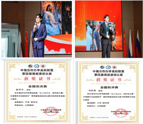 12月11-13日,以“人文之心 驭科技之翼:中俄青年共绘新时代”第五届中俄合作办学高校俄语演讲比赛全国总决赛在广东省湛江市圆满落幕。国际教育学院选派的2名学生凭借扎实的俄语功底、出色的演讲表现,双双斩获低年级组三等奖,创下在该赛事中的历史最佳成绩,为学校赢得了荣誉。