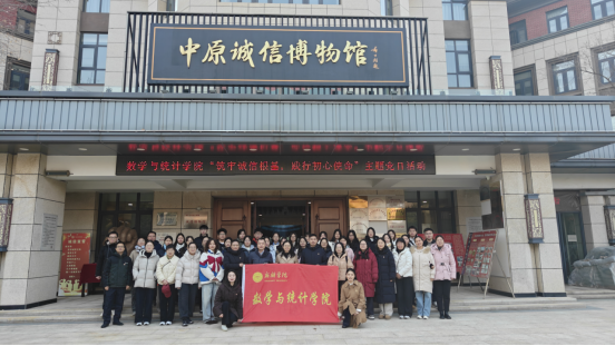 为厚植和弘扬诚信文化,锤炼诚信品格,12月27日,数学与统计学院党委组织学院党员教师和学生入党积极分子赴中原诚信博物馆开展以“筑牢诚信根基 坚守初心使命”为主题的党日活动。40余名师生沉浸式感悟诚信内涵,凝聚传承中华优秀传统诚信文化,汇聚笃行实干的奋进力量。