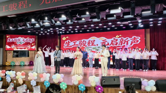 晚会伊始,暖场视频中一张张照片闪过,生物工程学院同学们的青春热情也在这一刻开始燃起。开场的《COSPLAY走秀》由漫翼动漫社倾情呈现,灵动的造型与动感的步伐瞬间点燃现场气氛,拉开晚会序幕。伴随着主持人真挚的开场词,学子们以如潮掌声,向莅临现场的各位领导致以最热烈的欢迎与最诚挚的谢意,晚会就在这一片欢悦祥和中正式启航。此次晚会以“开篇·骏启新元”“欢宴·岁乐驰宵”“合章·元辰同骧”三个篇章层层推进,节目形式多元丰富,从活力满满的表演到温情的演绎,全方位展现了学院师生的多才多艺与精神风貌。“骏启新元”华章启幕,情景剧《我记得》以时光为笔,勾勒出校园生活的温情剪影,引人共鸣;《心碎莫扎特》的婉转低吟,与《JUMP》的跃动身姿,交织出青春的多元乐章;小品《互联网体检》则以诙谐之笔,描摹网络众生相,博得满堂喝彩。其间,“摇一摇”互动如星火燎原,点燃了满场热情。“岁乐驰宵”雅韵流淌,一曲《江南》缱绻,铺展出诗意画卷;《ATTENTION》与《跃动节拍》以舞步诠释青春的律动与张力;《慢冷》的深情吟唱,直抵人心;《那一年,青年正十八》的朗诵,激荡着十八岁的理想与不羁;师生共唱《倔强》,则将那份执着坚守化为和声。击鼓传花,笑语欢声,台上台下,其乐融融。“元辰同骧”盛景高潮,《太聪明》的灵动、《反诈联盟》的巧思、《风月》的曼妙、《青花瓷》的雅致,尽显才情与创意。《不朽的抗战》朗诵,字字铿锵,回溯烽火岁月,激荡家国深情。终章,全场师生齐声高歌《明天会更好》,熟悉的旋律承载着对未来的无限希冀,为这场视听盛宴画上了一个温暖而充满力量的句点。