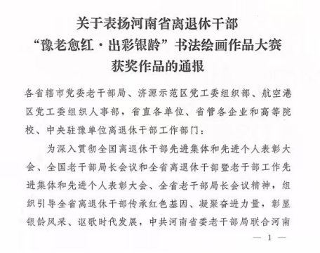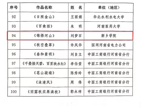 近日,中共河南省委老干部局、河南省文学艺术界联合会联合发布《关于表扬河南省离退休干部“豫老愈红·出彩银龄”书法绘画作品大赛获奖作品的通报》(豫老文〔2025〕98号),对在全省离退休干部书画大赛中涌现出的优秀作品及作者予以通报表扬。其中,新乡学院离退休教师刘梦石创作的绘画作品《锦绣河山》脱颖而出,成功入选绘画类获奖作品,展现了该校老同志深厚的艺术修养和昂扬的精神风貌。