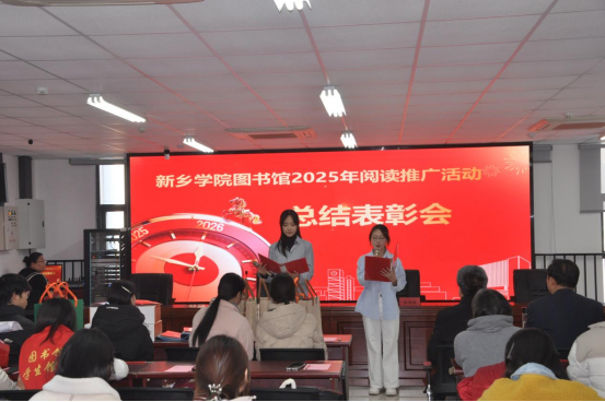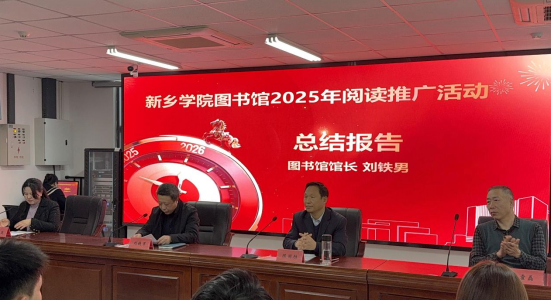 1月13日下午,新乡学院“逐光书香路,奋进新征程”2025年度阅读推广活动总结表彰会在图书馆会议室隆重举行。图书馆党支部书记陈国胜、馆长刘铁男、副馆长苏红英、霍磊出席会议,全校阅读推广工作表现突出的师生代表齐聚现场,共同回顾年度成果、表彰先进典型。会议由苏红英主持。