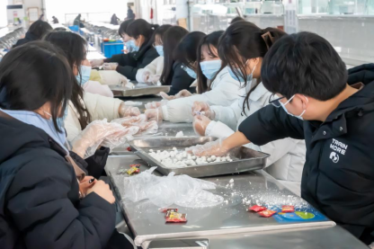 活动现场暖意融融、氛围浓厚。学院精心准备糯米粉、红枣、芝麻等食材,在后勤人员指导下,同学们规范洗手、穿戴口罩与手套,分工协作、互帮互助,从揉面、包馅到搓圆、塑形,一个个圆润饱满的汤圆在掌心成形,承载着青春创意与节日祝福。