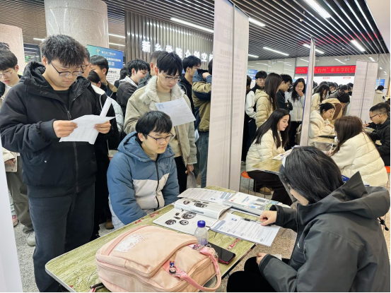 本次招聘会由台州市委人才办、台州市人力社保局与新乡学院联合主办。浙江严牌过滤技术股份有限公司、浙江天铁科技股份有限公司、浙江仙居君业药业有限公司等24家台州优质企业组团参会,聚焦新能源、新材料、智能制造、医药健康等重点产业,提供优质岗位800余个。招聘会现场供需热洽,毕业生与企业招聘人员深入交流,咨询岗位详情、发展空间与人才政策,积极投递简历。企业招聘人员耐心答疑,细致介绍台州人才政策与企业文化,精准筛选适配人才。