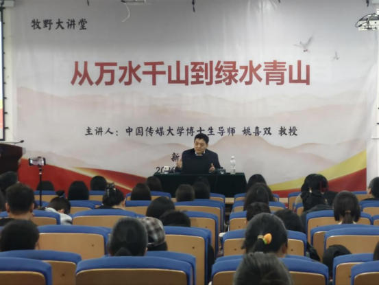 为纪念红军长征90周年,传承红色经典文化,提升新乡市中小学教师和我校师生的爱国情怀和诗词文化素养,3月31日下午,中国传媒大学博士生导师姚喜双教授莅临我校,在A5号楼报告厅作了题为《从万水千山到绿水青山》的专题讲座。新乡市各中小学教师代表、人文学院师生等200余人聆听了讲座。讲座由新乡学院党委委员、副校长杨钧教授主持。