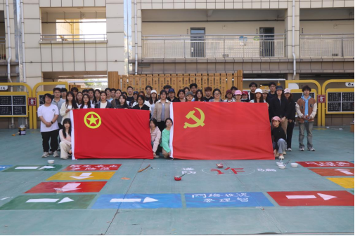学院立足美术专业特色,将党团员队伍建设、基层组织建设与党建品牌创建深度融合,把艺术实践服务作为锤炼党团员党性修养、提升专业能力、践行初心使命的重要路径。在“红色画笔”党建品牌引领下,学院先后开展系列主题墙绘活动,并于4月11日赴新乡学院附属中学开展地绘实践活动。活动由党团员师生牵头、分工协作,紧密结合基层中小学育人特色与学生成长需求,将算术练习、趣味互动与消防安全、反诈宣传等知识,融入600余平方米的地面艺术创作,让校园闲置地面变身兼具趣味性与教育性的“行走美育课堂”。