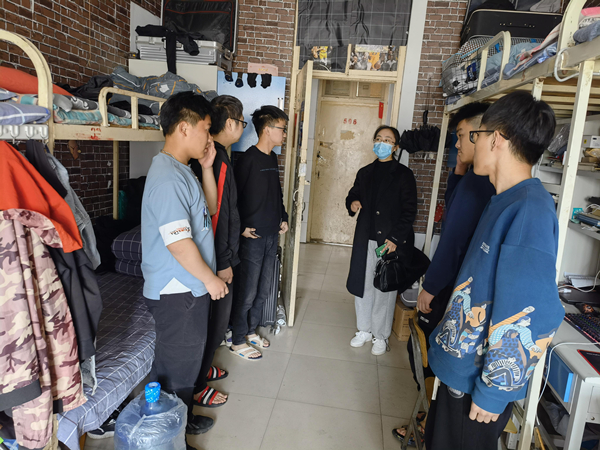 走访宿舍时,辅导员老师要求大家严格遵守疫情防控期间的各项管理规定,做好个人防护,不要私自出校,出门佩戴口罩;按时参加网上课程学习,提高自觉性,学好专业知识。并在交谈中了解同学们目前遇到的问题,提醒大家注意调节自我情绪;叮嘱毕业班学生认真准备考研复试,做好就业准备,同时告知同学们保持宿舍卫生,营造干净整洁的宿舍环境。