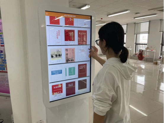 图书馆作为学校的文献收藏和信息服务中心,充分发挥文献信息资源优势,精心挑选200余种关于领导干部治理能力和管理能力提升等方面的书籍、期刊,方便广大读者阅读学习。读者还可以通过电子阅读器查看电子图书、报刊及有声读物,轻触屏幕书刊封面,可在线阅读,可扫码下载,轻松快捷。多类型、多载体的文献资源,为学校推进“能力作风建设年”活动提供理论支撑和学习资源保障。