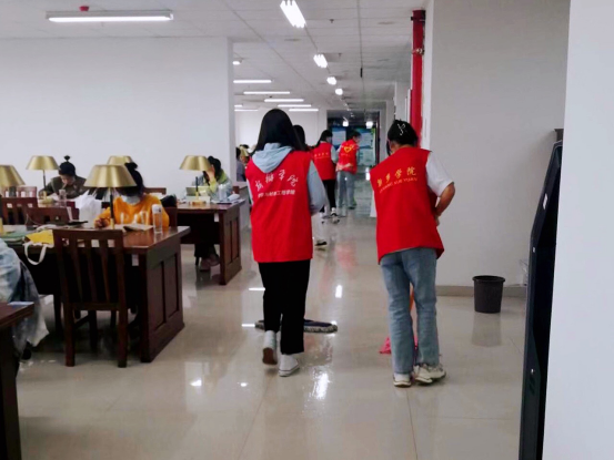 图书馆首先为这次卫生清洁活动制定了相应方案,划分了区域、人数。图书馆老师与志愿者一起劳动,对各楼层进行了清扫。五楼作为自主学习的重要场所,图书馆老师带领志愿者对其进行了集中、细致的清理。同时四、七、八、九、十楼层在大家的共同努力下,也被打扫得焕然一新。