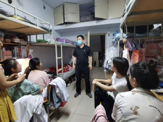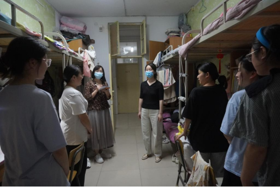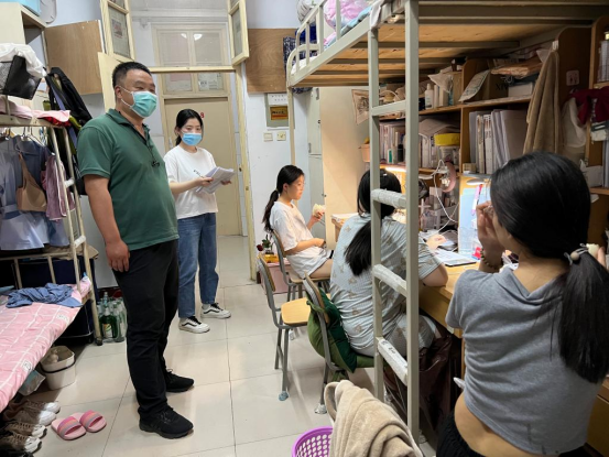 5月23日晚,为做好学期末的疫情防控常态化工作,了解学生思想动态以及学习生活困难,进一步强化学生宿舍管理,营造文明、安全、健康有序的科学防疫环境,护理学院党总支书记张翊、副书记贾晓萌、副院长张文杰和全体辅导员老师按照护理学院网格化管理层级,深入宿舍进行全覆盖式走访活动。